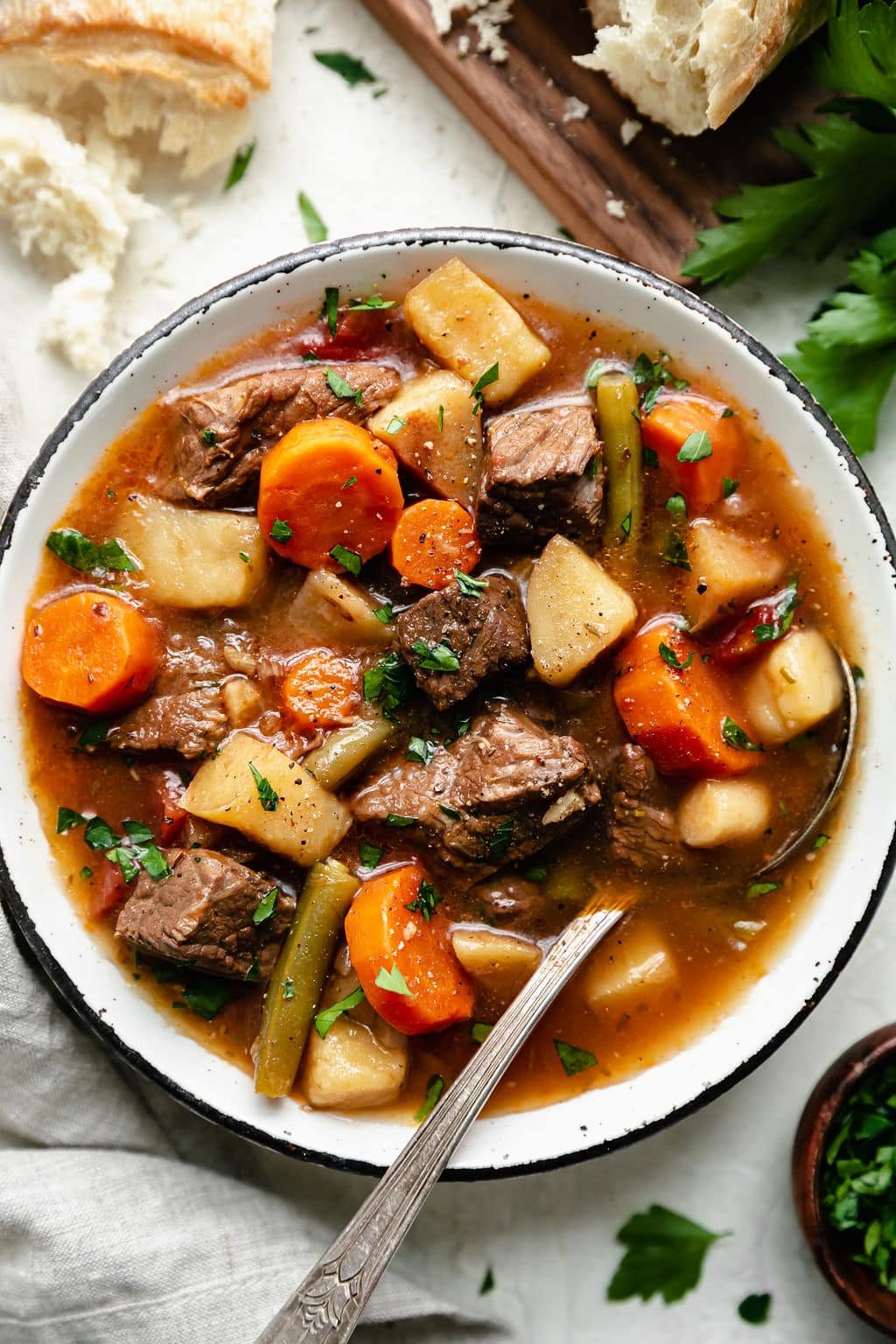 Slow Cooker Beef Stew with Root Vegetables from The Real Food Dietitians (recipe by Jessica Beacom) is a hearty, wholesome crockpot dinner featuring tender chunks of beef and a trio of potatoes, carrots, and parsnips simmered with savory herbs and broth — perfect for cozy nights and make-ahead meals.