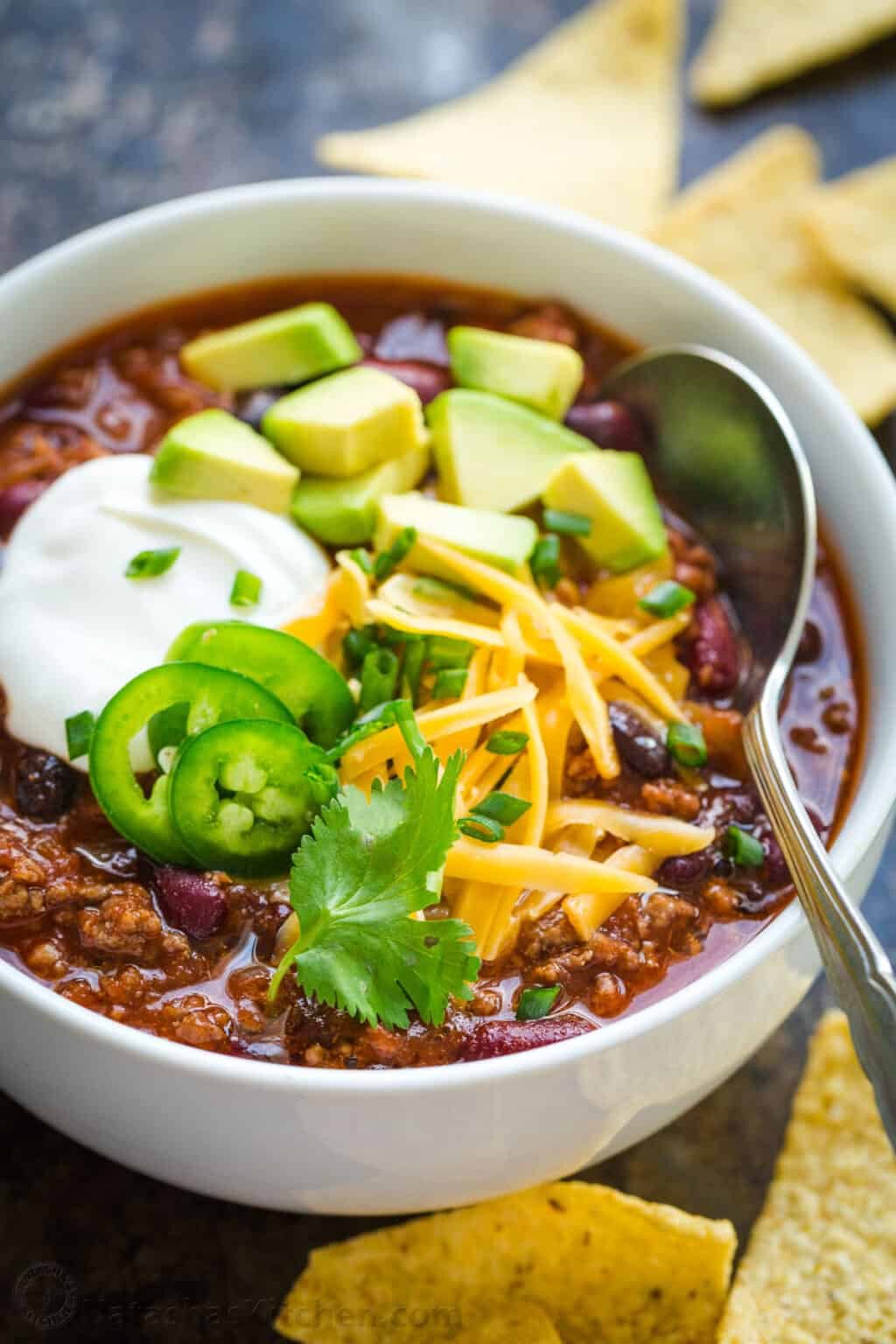 Slow Cooker Chili from Natasha’s Kitchen (recipe by Natasha Kravchuk) is a comforting crockpot dinner packed with tender beef, beans, tomatoes, and savory spices slow-simmered to rich, hearty perfection — ideal for cozy nights, game days, or easy weeknight meals.