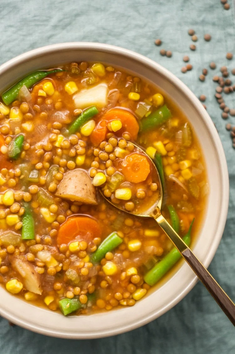 Slow Cooker Lentil & Veggie Stew from SkinnyMs. (recipe by Gale Compton) is a hearty, veggie-packed crockpot dinner loaded with lentils, potatoes, carrots, green beans, and savory seasonings slow-cooked to perfection. It’s rich in plant-based protein and fiber, making it a wholesome and comforting meal that’s perfect for meatless nights or easy meal prep.