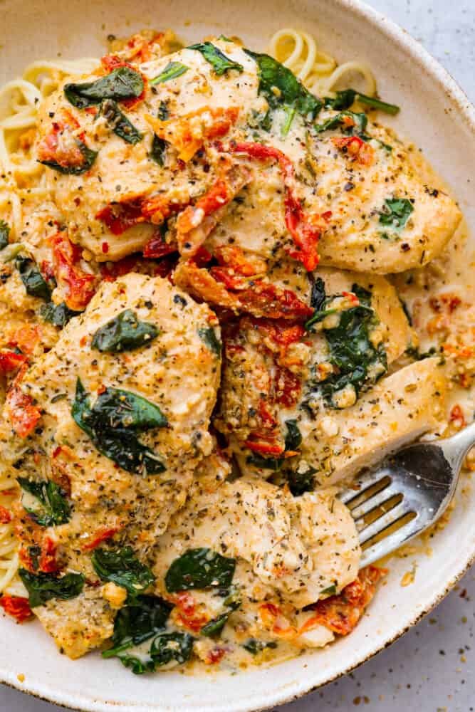 Recipe at : Slow Cooker Creamy Tuscan Chicken