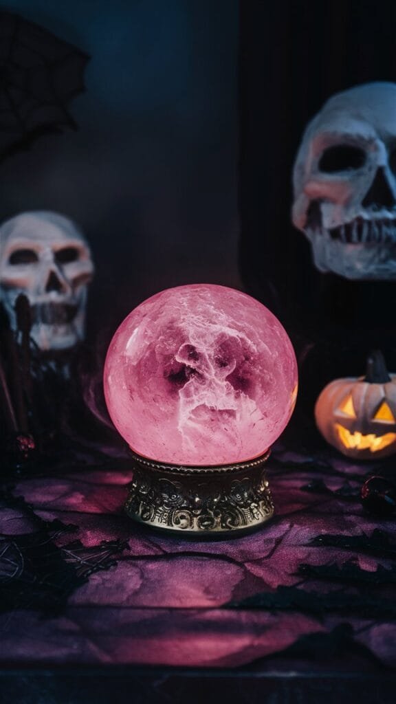 Add a mystical element to your decor with a pink-tinted crystal ball, perfect for a witchy vibe.