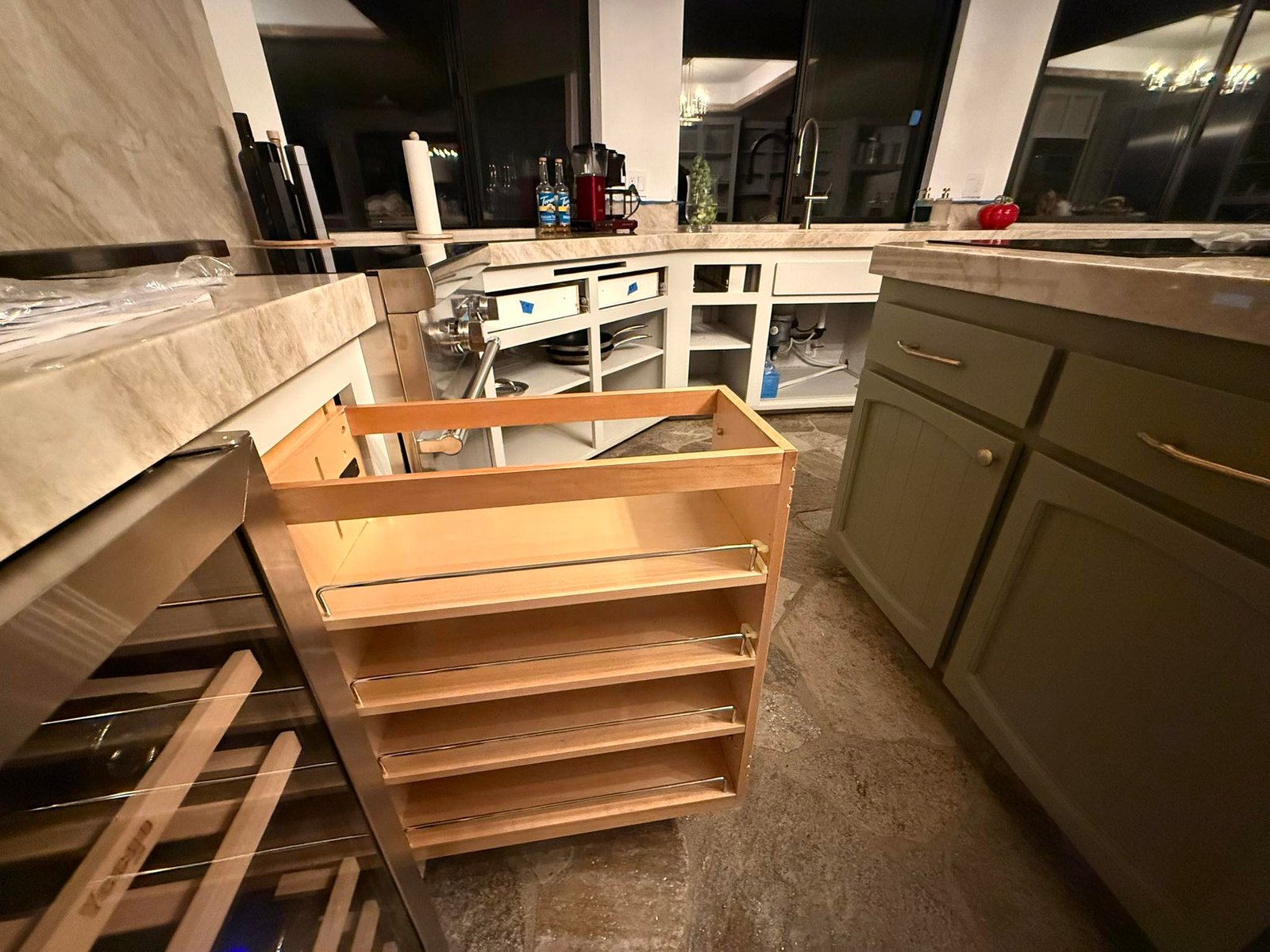 These turn deep cabinets into slide-out zones. Pots, appliances, or dry goods come forward instead of staying hidden at the back. No bending, no guessing.