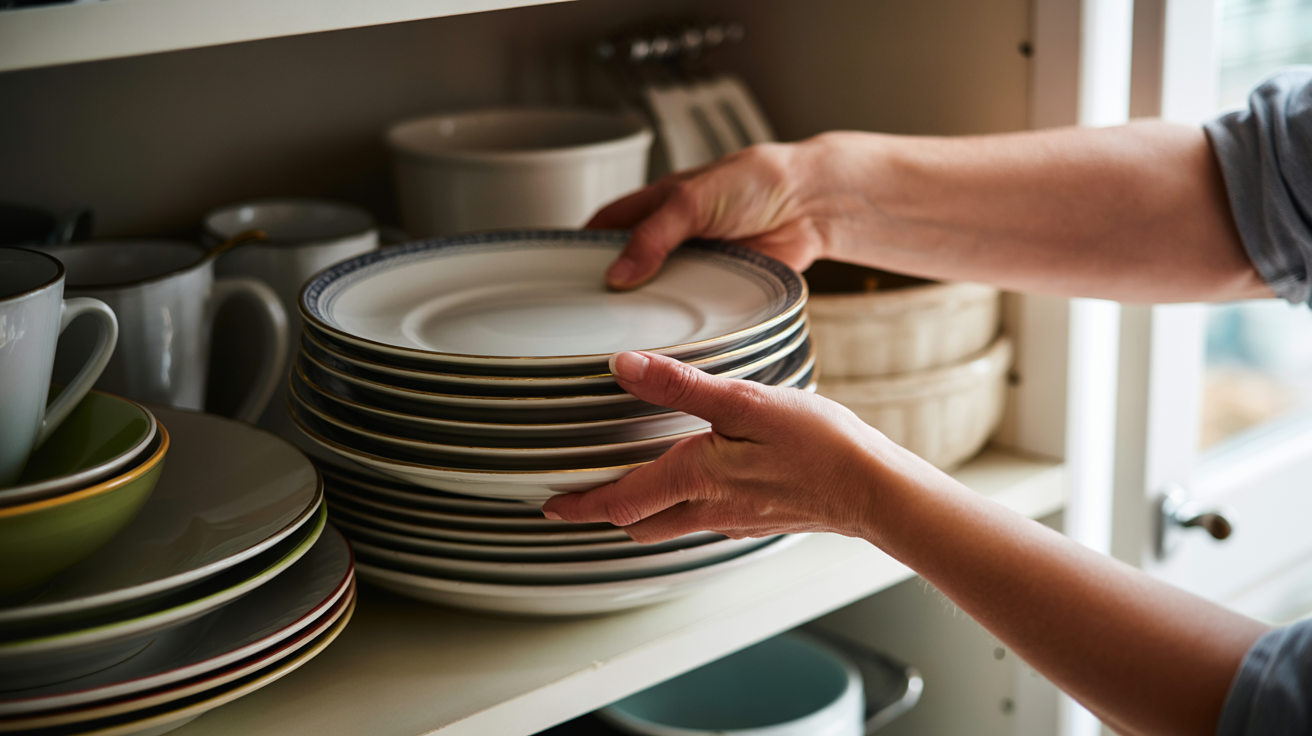 You stack plates, bowls, and serving dishes inside one cabinet. The most-used plates end up at the front—for a while. Then heavier or rarely used items slowly creep forward. Soon, everyday items are buried, and you’re lifting stacks daily just to eat lunch.