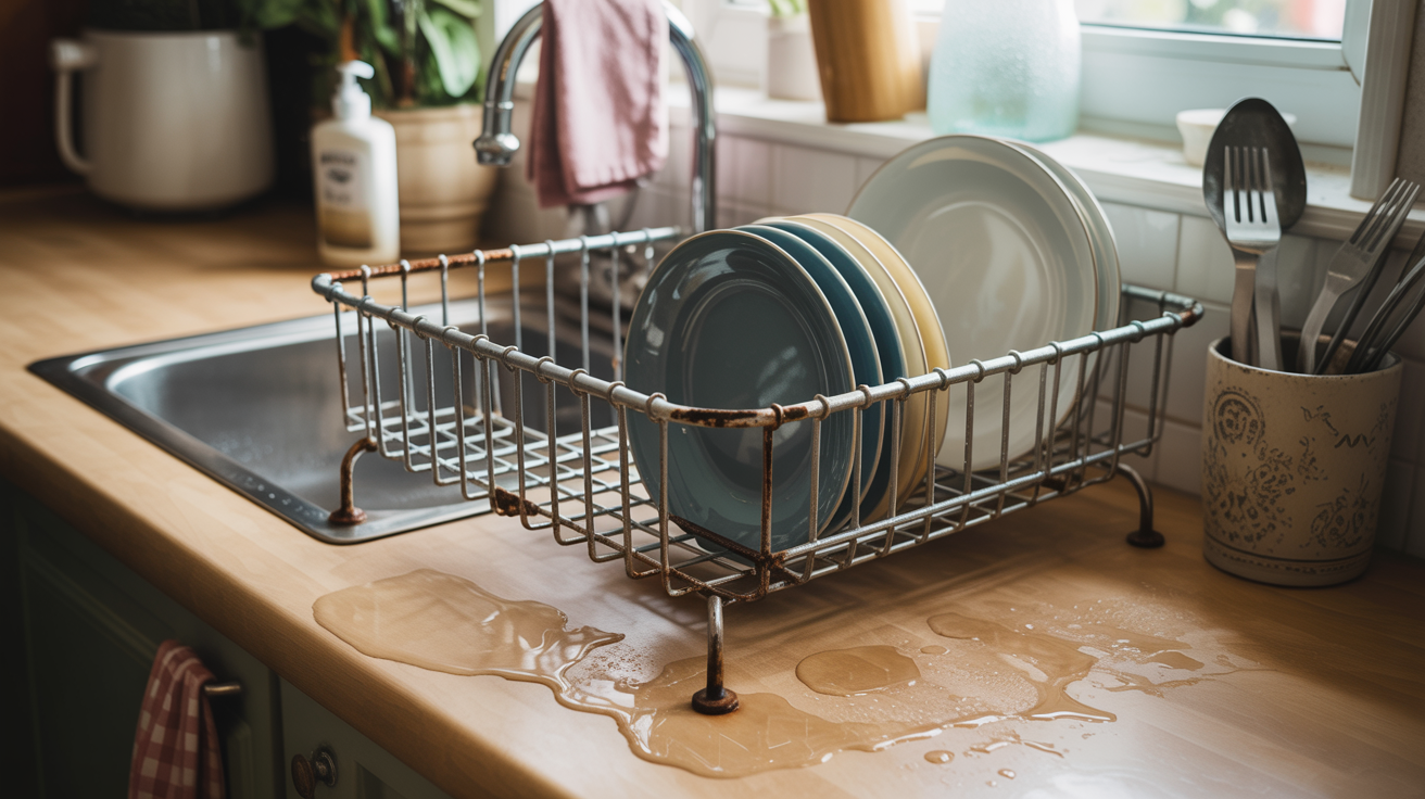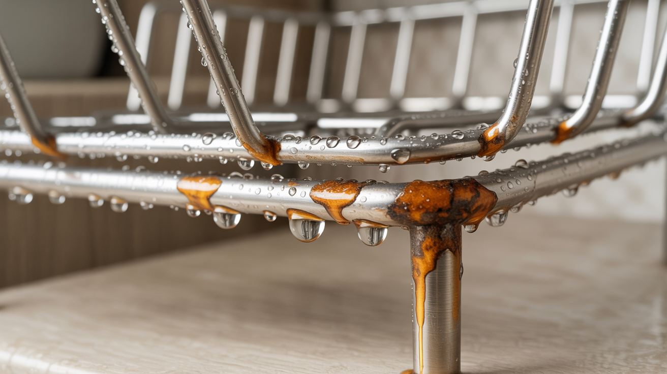 Dish racks live in the wettest zone of the kitchen. Constant exposure to water, soap residue, and humidity creates the perfect conditions for corrosion.